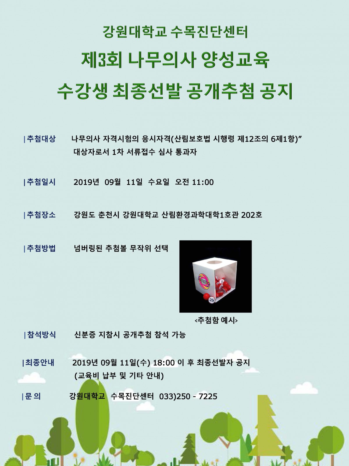 제3회 나무의사 양성교육 공개추첨 공지 페이지 정보 작성자 진단센터 댓글 0건 조회 1,952회 작성일19-09-09 18:13 본문 제3회 나무의사 양성교육 공개추첨 공지 댓글목록 목록