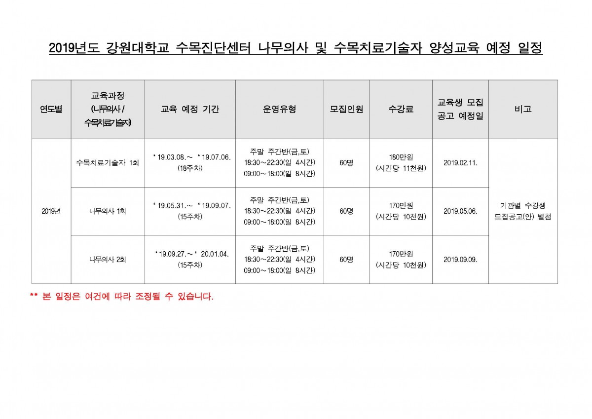 2019년도 나무의사 및 수목치료기술자 양성교육 [예정] 일정 안내