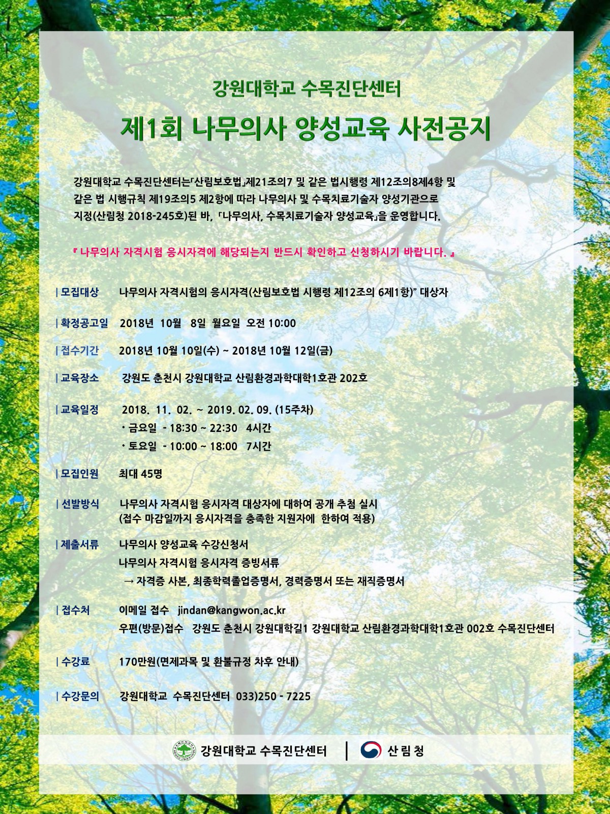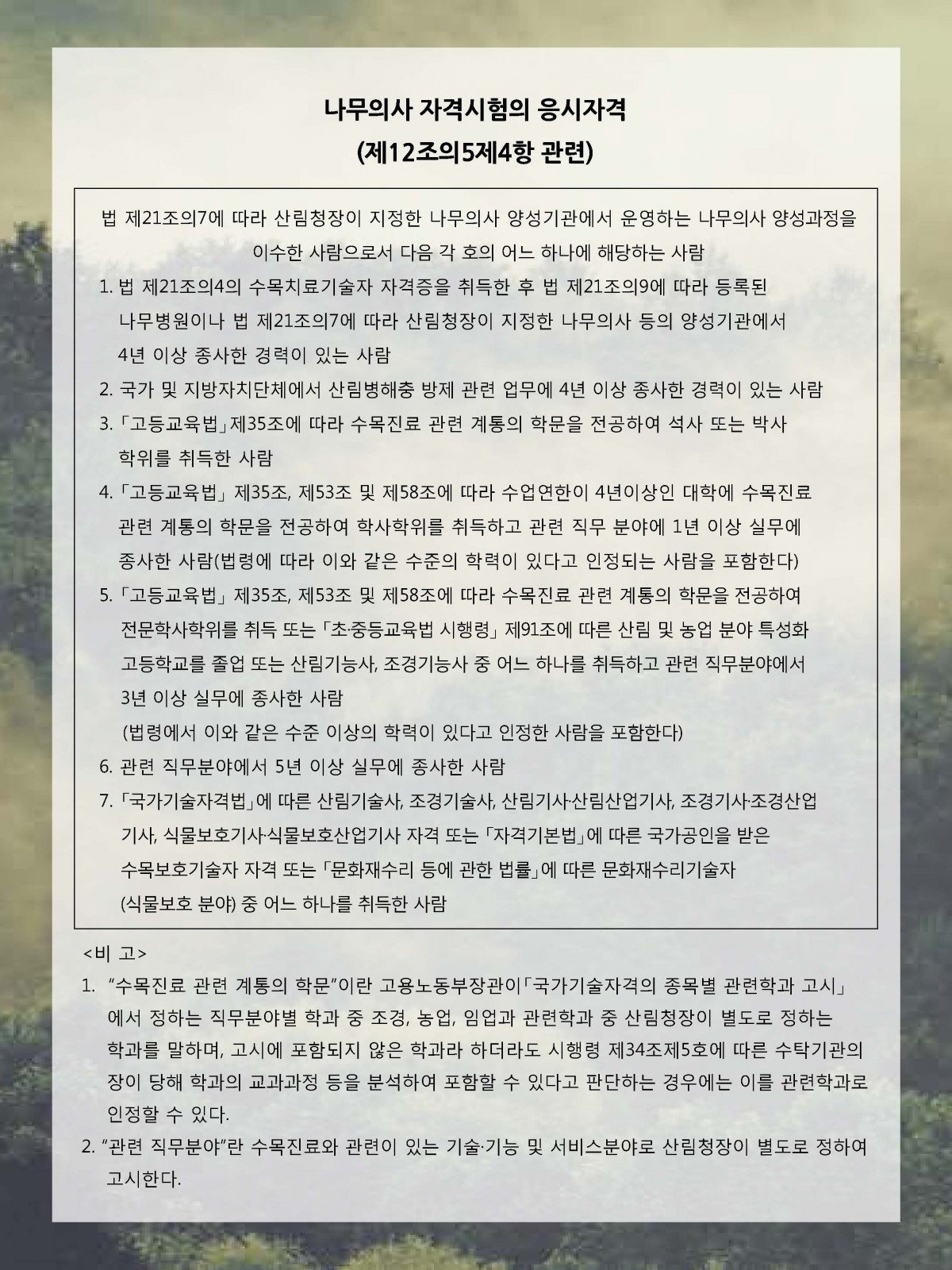 반드시 나무의사 응시자격 해당이 되시는지 확인하시고 신청 준비하시기 바랍니다.