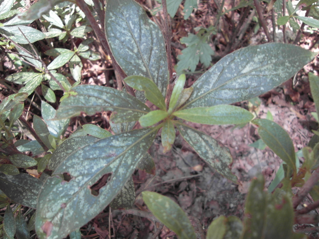 철쭉의 잎이 바래지면서 많은 부분에 나타나고 있습니다. | ||||||
