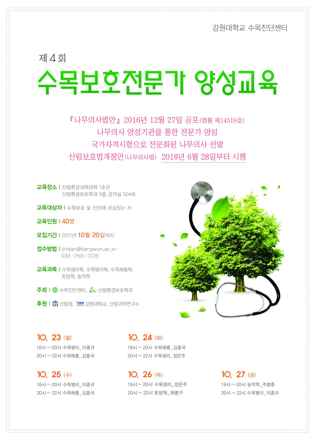 제4회 수목보호전문가 양성교육 페이지 정보 작성자 진단센터 댓글 0건 조회 3,257회 작성일17-11-03 15:32 본문 제 4회 수목보호전문가 양성교육 안내 ***첨부파일을 확인해주십시오. 댓글목록 목록