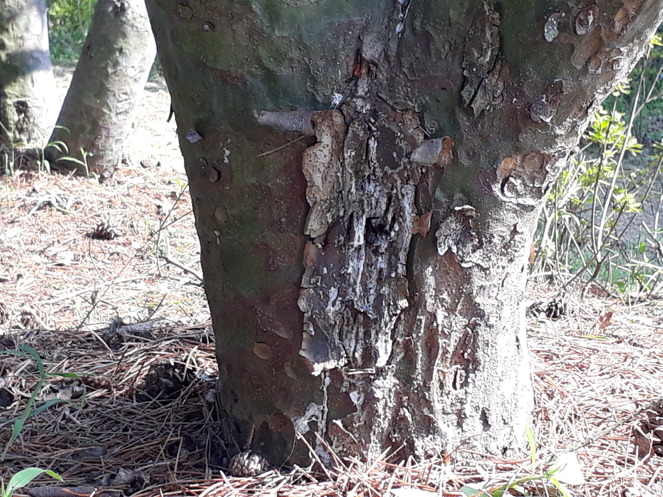 첨부해주신 수피는 비생물적인 요인에 의한 것으로 보여집니다.