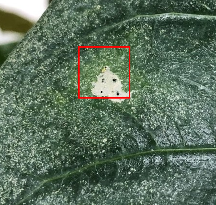 육안으로 흰가루 및 해충으로 보이는 물체가 확인됩니다.