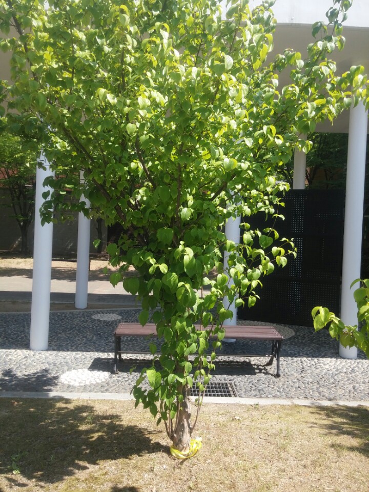 정문 서암관 쪽 조경수 산수유 나무입니다. 관찰당시 산수유 나무들은 전체적이 잎가마름 증상과 황화증상을 볼 수 있었습니다. 관찰 위치는 도로와 주차장 사이고, 간격 조절로 인해 햇볕을 잘 받는 자리이며 땅은 다소 말라있었습니다. 완전 나지는 아니지만 초본이나 지피류가 적은 편이었습니다.