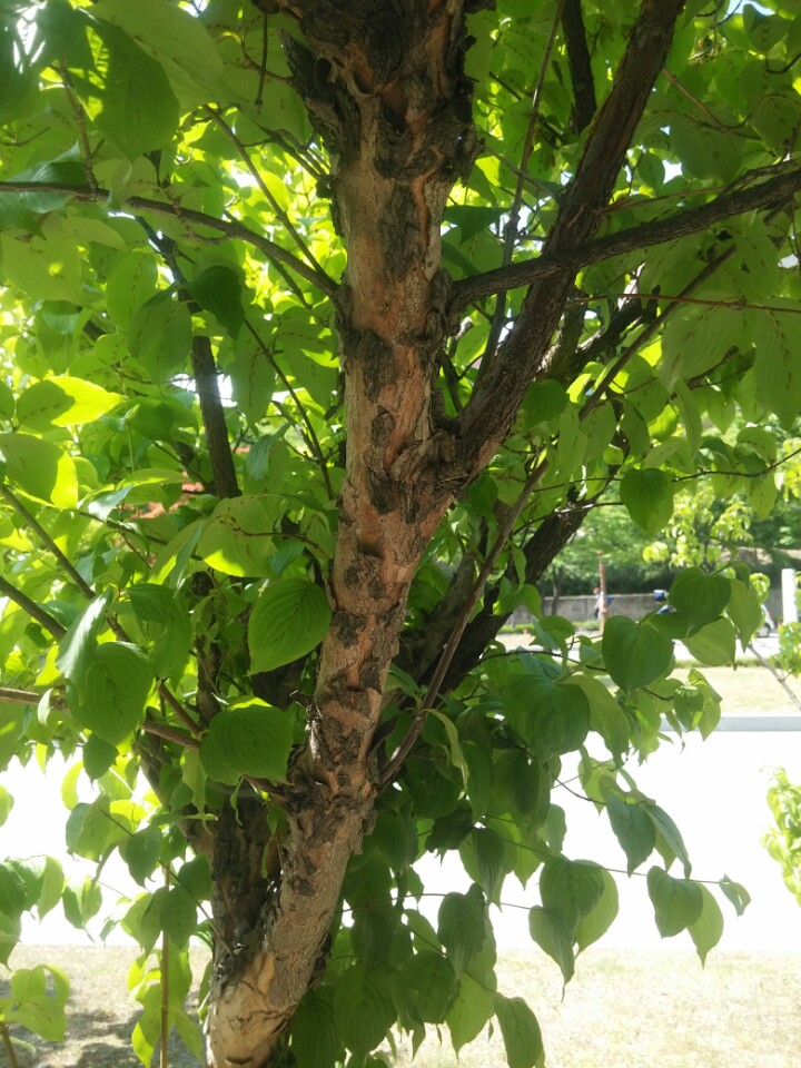 2. 산수유 수피의 정상적인 모습으로 보여집니다. 대부분의 수목은 생육을 하며 비대상장과 수고생장을 반복해나가고 이로 인해 수피가 탈피되는 모습을 보입니다.