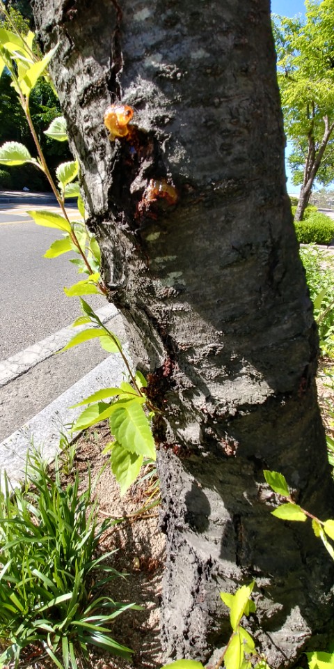 벚나무 수피에 가지랑 잎이 너무 많이 나있고 나무에 수액이 흐르는데 무슨 병에라도 걸린건가요?