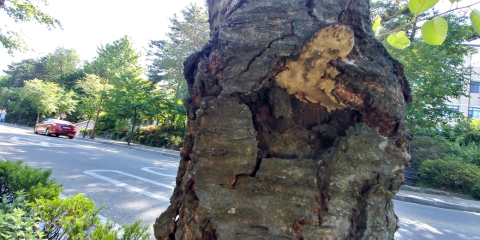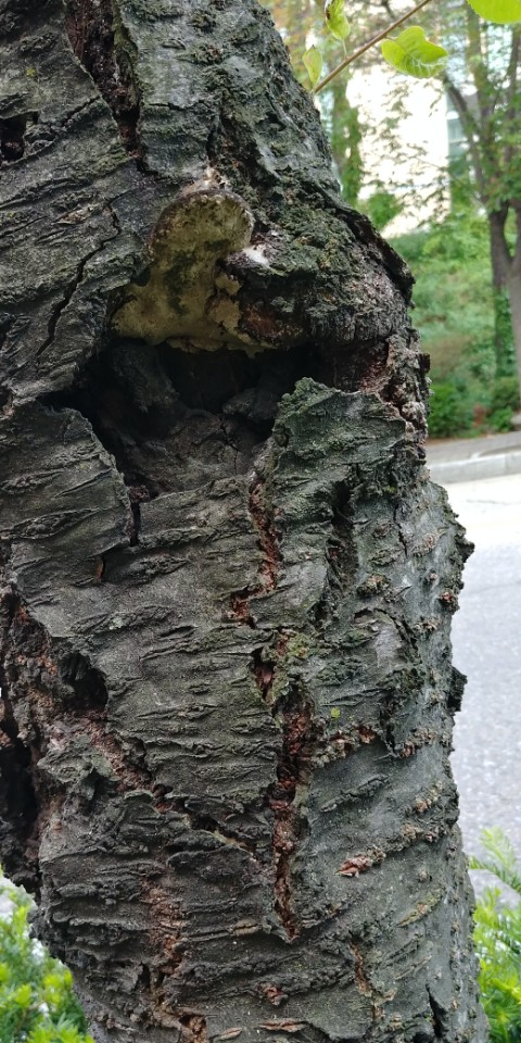 그리고 수피가 갈라지고 부서져 있고 이상한 버섯같은게 있는데 나무에 해가 되는 아인가요?