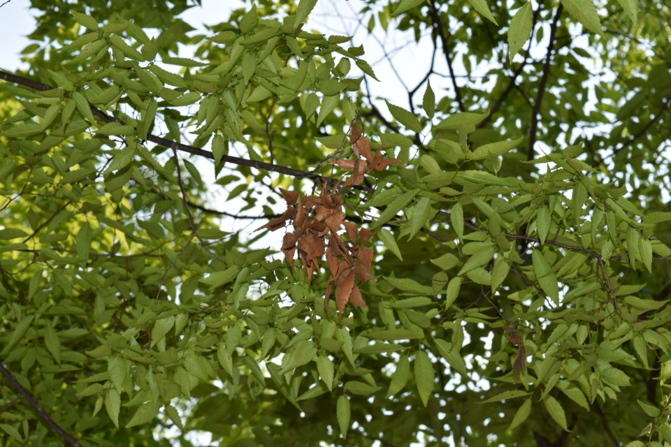 잎이 말라있는 것은 작고 얇은 가지가 꺽어지거나 부러져서 고사되었고 이로 인해