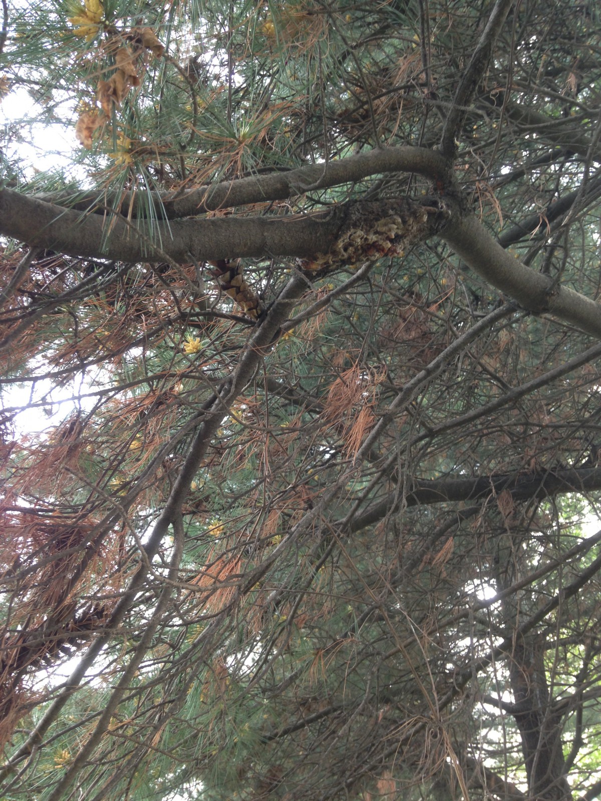 잣나무에 이상한 혹처럼 문드러진 게 있습니다.