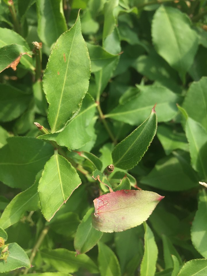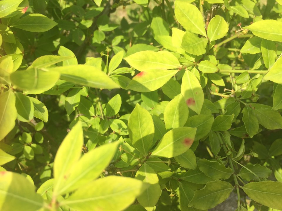 화살나무 잎에 붉은 반점이 있는데 이게 수목병인지 다른 원인이 있는 지 궁금합니다