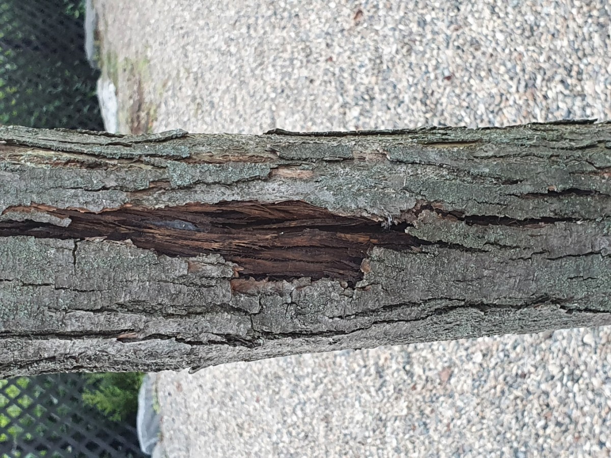 일조량이 길지 않아도 장마 후 강한 햇살이 연일 지속되며 증산이 가속되며 일교차가 커지면 얇은 수피는 피해를 받을 수 있습니다. 현재 상태에서는 목재부후가 발생할 확률이 높기 때문에 외과 수술을 하는 것이 좋겠습니다.