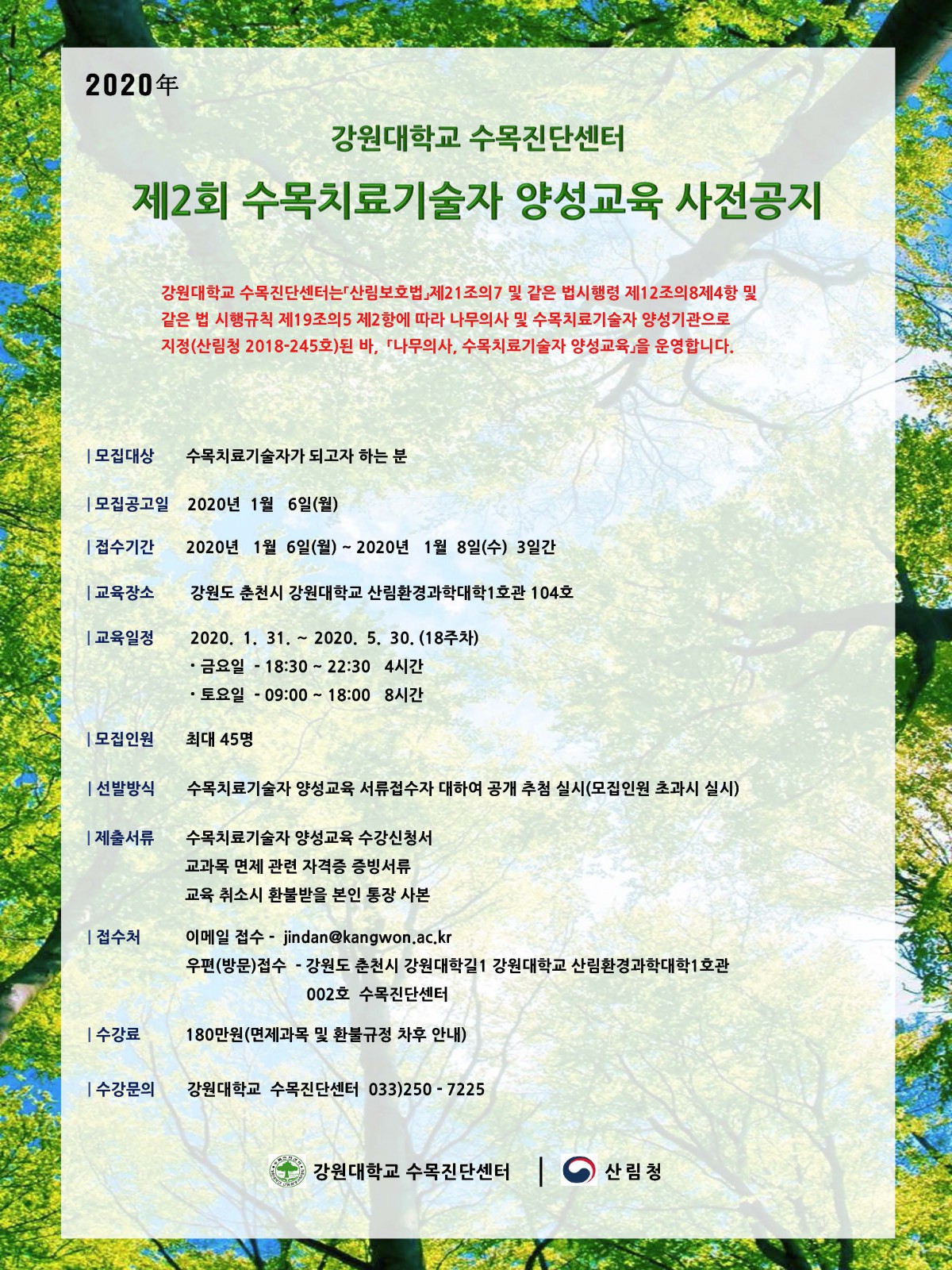 - 제2회 수목치료기술자 양성교육 사전공지.pdf (615.1K) 52회 다운로드 | DATE : 2020-01-02 09:52:02
